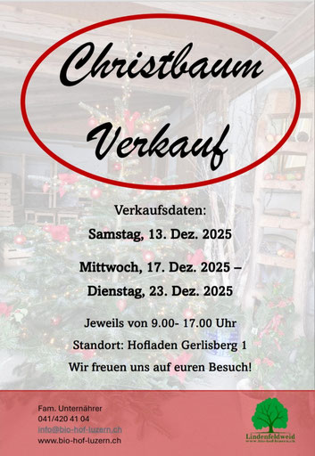 13.12.2023 Liebe Kundinnen und Kunden der Christbaumverkauf steht wieder vor der Türe.